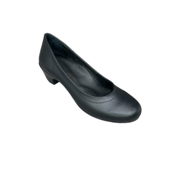 Δερμάτινες γόβες SMART STEPS 230B σε μαύρο χρώμα, με χαμηλό σταθερό τακούνι και ανατομική εφαρμογή. Ιδανικές για εργασία και καθημερινή χρήση, προσφέρουν άνεση και στήριξη όλη την ημέρα.
