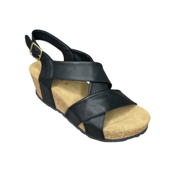 Γυναικεία ανατομικά πέδιλα NATURA RELAX 813-013-BLACK σε διαχρονικό μαύρο χρώμα, ιδανικά για καθημερινή άνεση και κομψότητα. Ο σχεδιασμός με φαρδιά λουράκια από γνήσιο δέρμα προσφέρει σταθερό κράτημα και ανθεκτικότητα, ενώ το ρυθμιζόμενο λουράκι στον αστράγαλο εξασφαλίζει τέλεια εφαρμογή. Ο δερμάτινος ανατομικός πάτος αγκαλιάζει φυσικά το πέλμα, προσφέροντας ξεκούραστο βάδισμα καθ’ όλη τη διάρκεια της ημέρας. Η ελαφριά σόλα P.U. με φιάπα απορροφά τους κραδασμούς, κάνοντας το παπούτσι ιδανικό για πολύωρη χρήση.