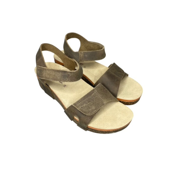 Γυναικεία ανατομικά πέδιλα NATURA RELAX 816-017-RUSTIC/MARRONE σε ζεστή καφέ απόχρωση, ιδανικά για καθημερινή άνεση και φυσικό στυλ. Κατασκευασμένα από γνήσιο δέρμα, προσφέρουν ανθεκτικότητα και άψογη εφαρμογή, ενώ τα ρυθμιζόμενα λουράκια με velcro εξασφαλίζουν εύκολη προσαρμογή στο πόδι. Ο δερμάτινος ανατομικός πάτος υποστηρίζει σωστά το πέλμα, προσφέροντας ξεκούραστο περπάτημα καθ’ όλη τη διάρκεια της ημέρας. Η ελαφριά σόλα P.U. με φιάπα απορροφά τους κραδασμούς και ενισχύει την άνεση σε κάθε βήμα.