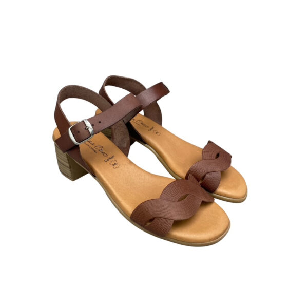 Ανατομικό δερμάτινο πέδιλο Smart Steps 24703 Cuero με πλεκτό λουράκι, δερμάτινο πάτο και σταθερό ξύλινης όψης τακούνι. Κομψό, άνετο και ιδανικό για καθημερινές καλοκαιρινές εμφανίσεις.