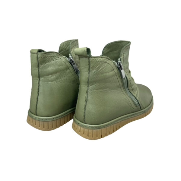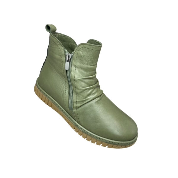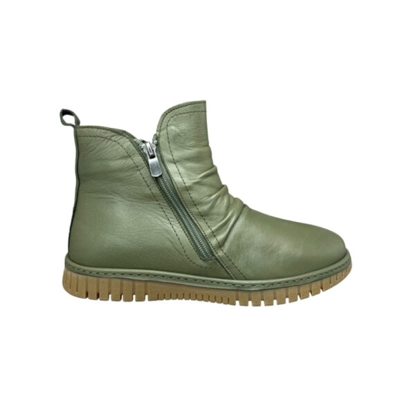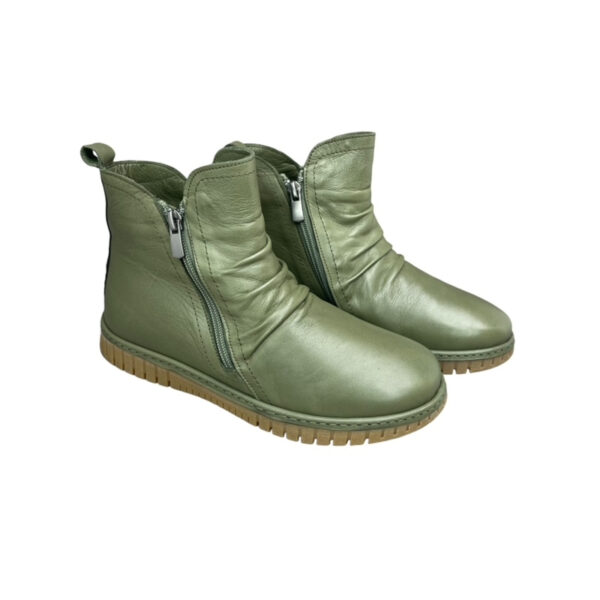 Γυναικεία μποτάκια από γνήσιο δέρμα σε μοντέρνα απόχρωση χακί, σχεδιασμένα για άνεση και καθημερινή χρήση. Το επάνω μέρος είναι κατασκευασμένο από υψηλής ποιότητας δέρμα, ενώ η εσωτερική επένδυση από ζεστό φλις προσφέρει ιδανική θερμομόνωση τις κρύες ημέρες. Ο δερμάτινος πάτος ενισχύει την άνεση και την υγιεινή του ποδιού, ενώ η αντιολισθητική σόλα από καουτσούκ εξασφαλίζει σταθερό και ξεκούραστο βάδισμα. Ένα ελαφρύ και comfort σχέδιο που ταιριάζει σε κάθε καθημερινή εμφάνιση.