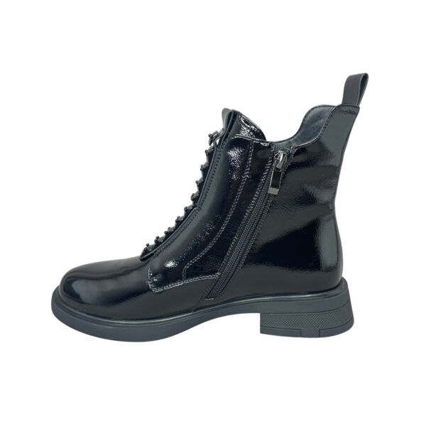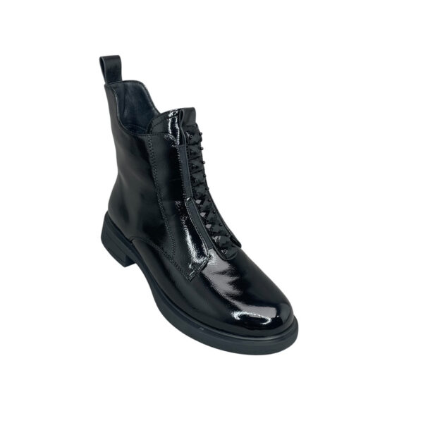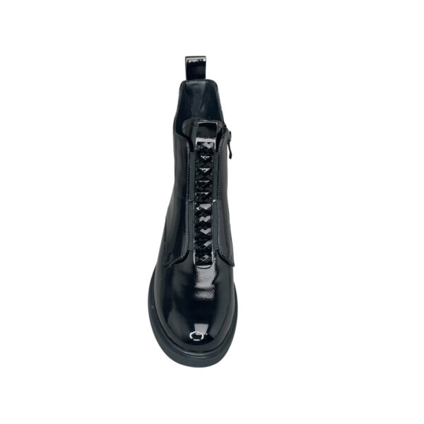 Η λουστρίνι υφή σε μαύρο χρώμα προσφέρει εντυπωσιακή, λαμπερή εμφάνιση, ενώ η γραμμή του παπουτσιού παραμένει minimal και κομψή.