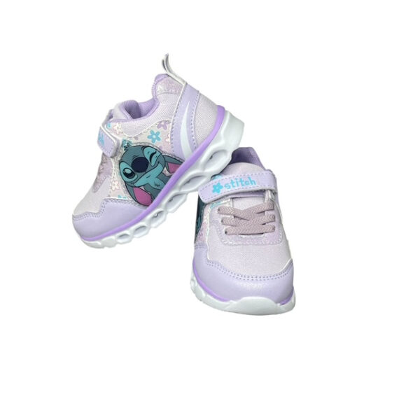 Μοντέρνο παιδικό αθλητικό Disney Stitch σε υπέροχη λιλά απόχρωση, σχεδιασμένο για άνεση, στήριξη και ξεχωριστό στιλ. Με εντυπωσιακό σχέδιο Stitch στο πλάι και φωτιζόμενη σόλα, χαρίζει fun χαρακτήρα σε κάθε βήμα.
