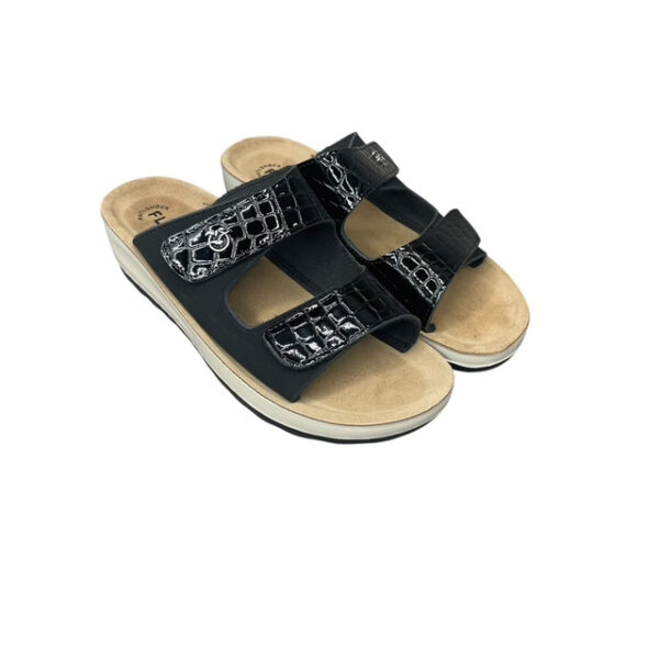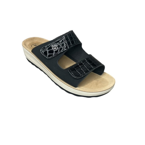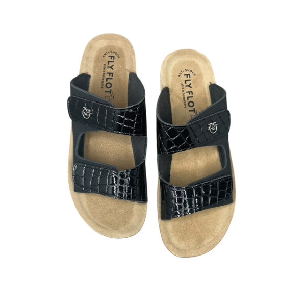 Οι γυναικείες ανατομικές παντόφλες FLY FLOT 42H61HC-NERO είναι σχεδιασμένες για κορυφαία άνεση, σταθερότητα και κομψότητα στην καθημερινότητα. Κατασκευασμένες στην Ιταλία (Made in Italy), διαθέτουν επάνω μέρος από συνθετικό υλικό υψηλής ποιότητας και δερμάτινο ανατομικό πάτο που προσφέρει φυσική στήριξη και ξεκούραστο βάδισμα.