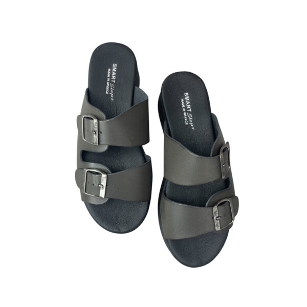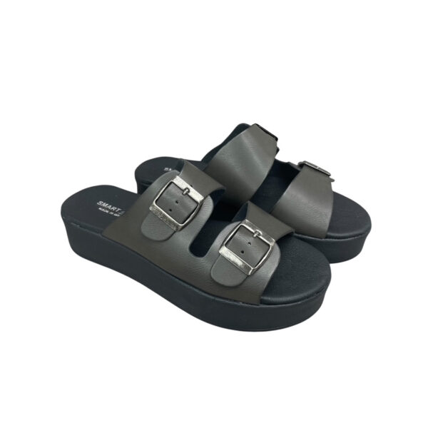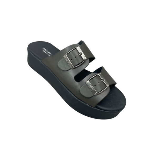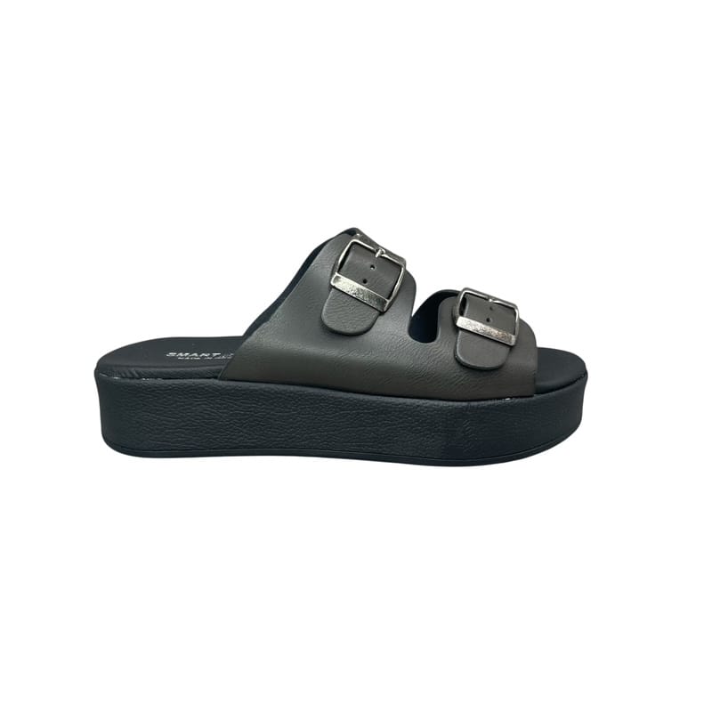 Γυναικείες flatform παντόφλες Smart Steps 32101PANT σε μαύρο χρώμα, με διπλή ρυθμιζόμενη αγκράφα, ανατομική εσωτερική σόλα και ελαφριά αντιολισθητική flatform σόλα. Ιδανικές για άνετο καθημερινό περπάτημα.