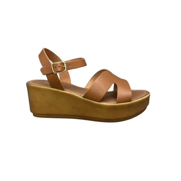 Γυναικείες δερμάτινες πλατφόρμες Bellini Italy Lecce 300 σε ταμπά χρώμα, με σταυρωτό σχέδιο, μαλακή ελαφριά σόλα και ρυθμιζόμενο λουράκι για άνετο και σταθερό περπάτημα.