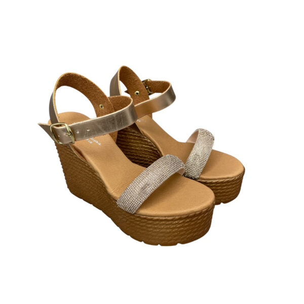 Η ψηλή αλλά ελαφριά πλατφόρμα, προσφέρει άνετο ύψος χωρίς να κουράζει. Η μαλακή εσωτερική σόλα ενισχύει την άνεση στο βάδισμα και καθιστά το μοντέλο ιδανικό για καθημερινή χρήση, βόλτες ή πιο ιδιαίτερες καλοκαιρινές εμφανίσεις. Η απόχρωση του χαλκού δίνει ζεστασιά και ταιριάζει με όλα τα καλοκαιρινά look.