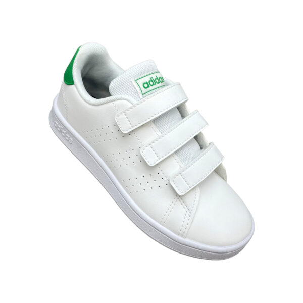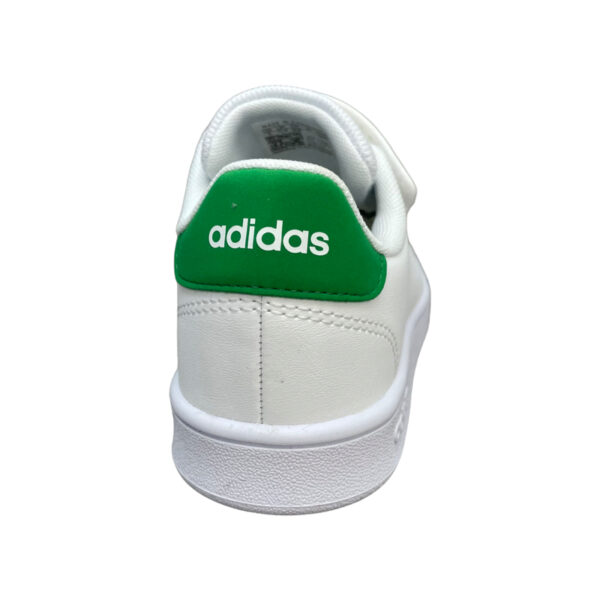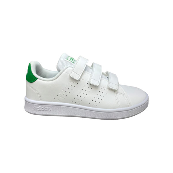 Παιδικά sneakers Adidas Advantage CF C FTWWHT GW6494 σε λευκό με πράσινες λεπτομέρειες και εύκολο κλείσιμο Velcro.