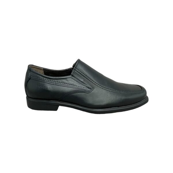 Ανδρικά δερμάτινα ανατομικά παπούτσια Softies σε μαύρο χρώμα, με ελαστικά πλαϊνά, ανατομικό πάτο και αντιολισθητική σόλα.