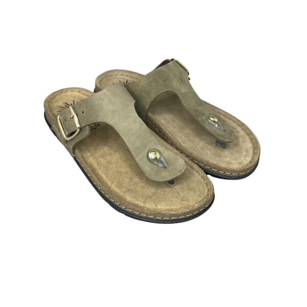 Γυναικεία δερμάτινα σανδάλια SUNNY SANDALS σε μοντέρνα λαδί απόχρωση, ιδανικά για άνετες και κομψές καλοκαιρινές εμφανίσεις. Ο σχεδιασμός τύπου δίχαλο (toe-post) προσφέρει σταθερότητα και φυσική κίνηση στο περπάτημα, ενώ το γνήσιο δέρμα εξασφαλίζει αντοχή και άψογη εφαρμογή.