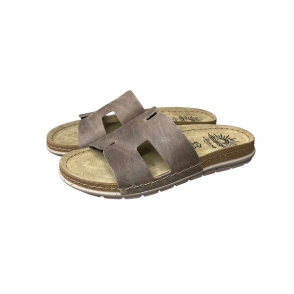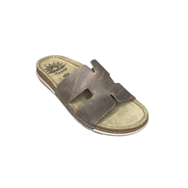 Ο δερμάτινος ανατομικός πάτος προσαρμόζεται στο πέλμα, προσφέροντας σωστή στήριξη και ξεκούραστο βάδισμα καθ’ όλη τη διάρκεια της ημέρας. Το φαρδύ επάνω λουράκι αγκαλιάζει σταθερά το πόδι, ενώ ο slip-on σχεδιασμός εξασφαλίζει ευκολία στην εφαρμογή.